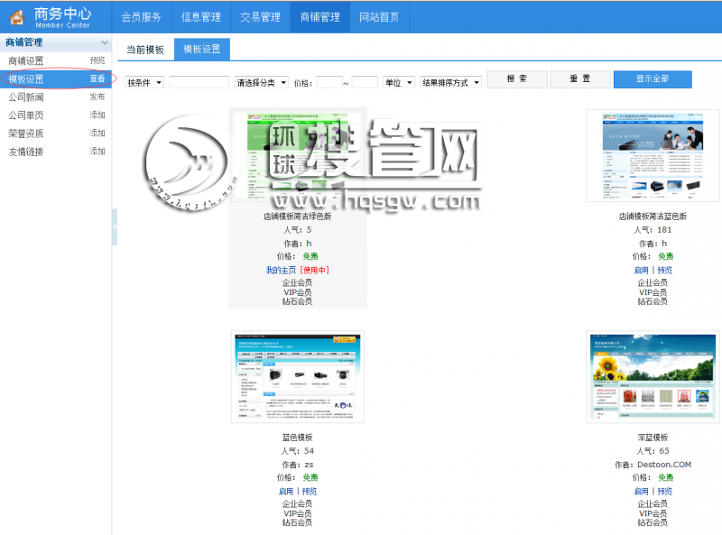 還可以選擇個(gè)性化商鋪模板。如下圖:
