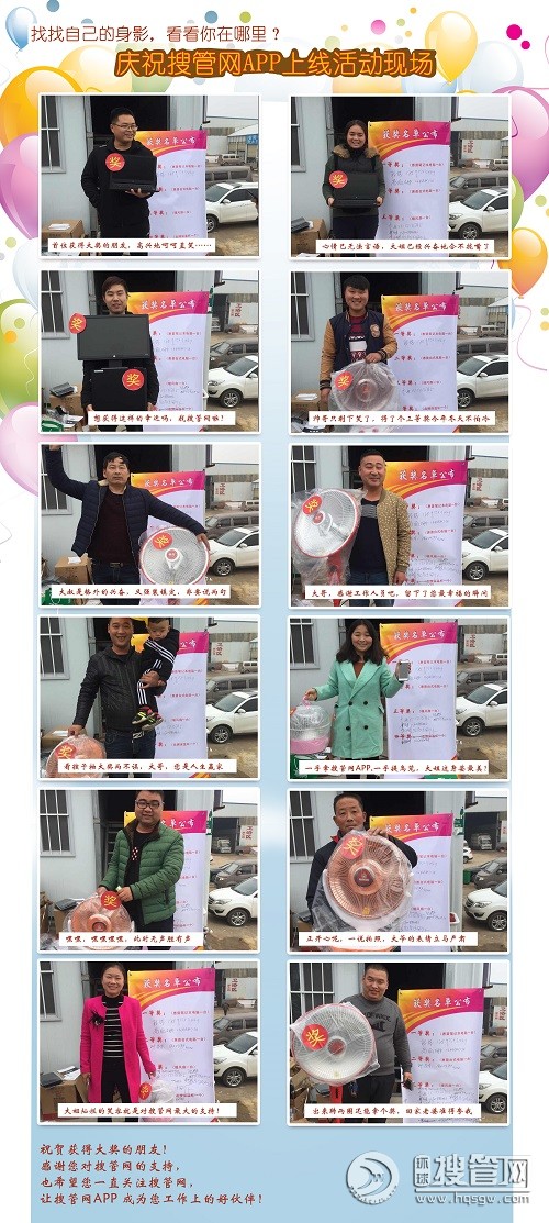 工作人員:對于抽獎的規則其實是很簡單的,嘉賓要以掃描二維碼的形式在自己手機上下載公司的搜管網app,安裝、注冊會員成功后,方可參與這次抽獎活動。中獎嘉賓會在現場即刻收到所中獎品。現場負責人員會為部分獲獎嘉賓拍攝與獎品在一起的合照。獲獎嘉賓發表獲獎感言。