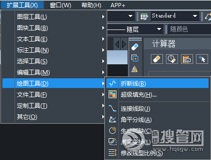 3.在CAD中,繪制折斷線功能非常便捷,在擴(kuò)展工具中即可找到,如下圖所示: