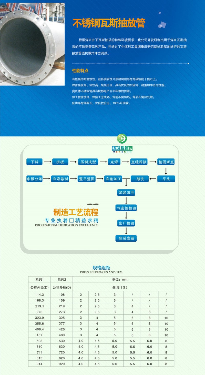 【供應】不銹鋼瓦斯抽放管