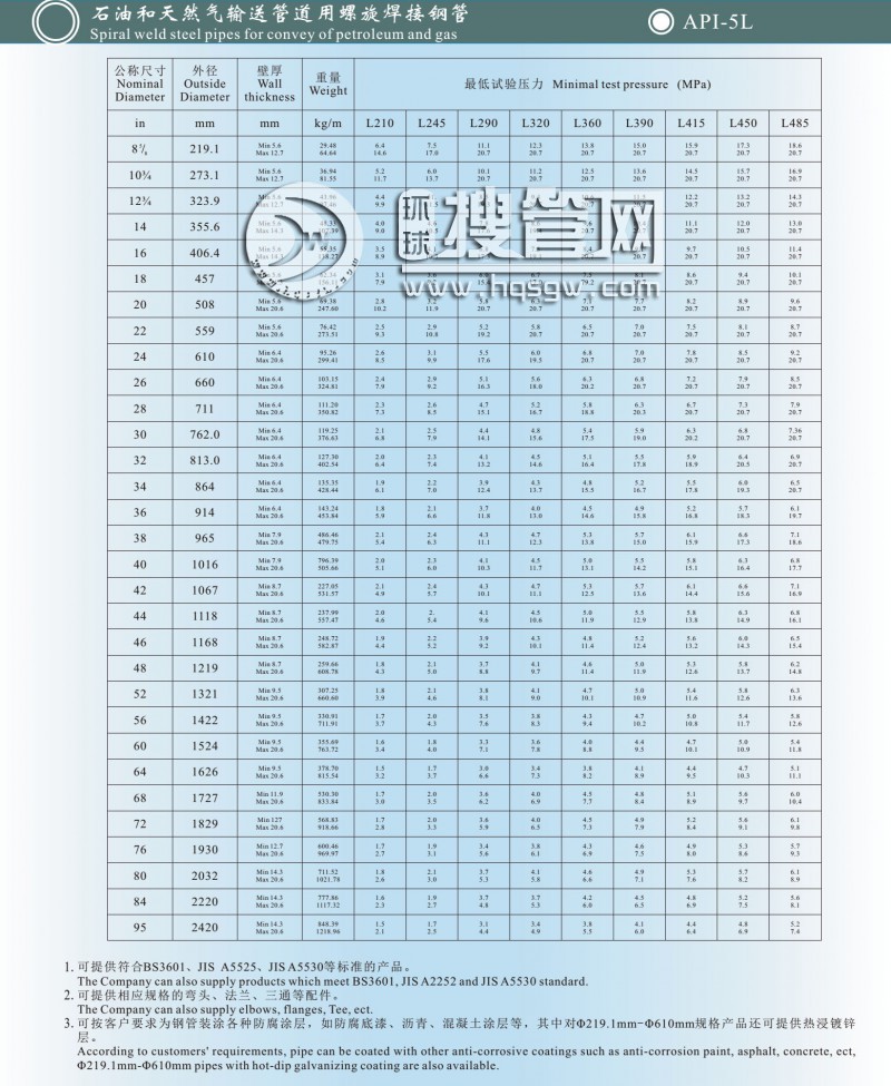 石油和天然氣輸送管道用螺旋焊接鋼管