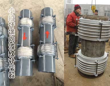 小拉桿橫向波紋補(bǔ)償器由兩段波紋管,中間接管及帶有限位螺母的小拉桿等零件組成,是一種用來(lái)補(bǔ)償彎曲管道的橫向位移和角位移的工具。小拉桿橫向波紋補(bǔ)償器除可以補(bǔ)償彎曲管道的橫向位移和角位移,同時(shí)也可以補(bǔ)償軸向位移。它能吸收管系任意平面內(nèi)的橫向位移。位移是拉桿上球面螺母繞球米那墊圈轉(zhuǎn)動(dòng),同時(shí)拉桿還具有承受內(nèi)壓推力能力。