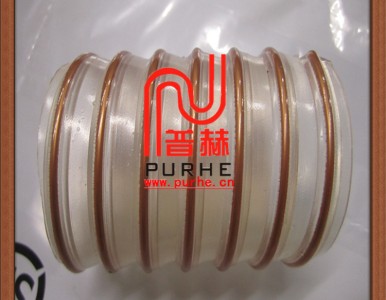 特性:聚酯型聚氨酯(ESTER PU)軟管, 帶鍍銅色包塑鋼絲螺旋加強筋。內壁平滑, 以保證物料在管內流動順暢. 和傳統的橡膠軟管和PVC軟管相比具有極高的耐磨度和使用壽命。耐礦物油、耐化學品。具有優異的耐臭氧和耐候性。螺旋鋼絲接地可以排靜電。