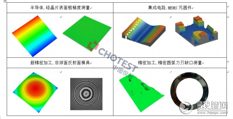 對各種產(chǎn)品、部件和材料表面的平面度、粗糙度、波紋度、面形輪廓、表面缺陷、磨損情況、腐蝕情況、孔隙間隙、臺階高度、彎曲變形情況、加工情況等表面形貌特征進行測量和分析。