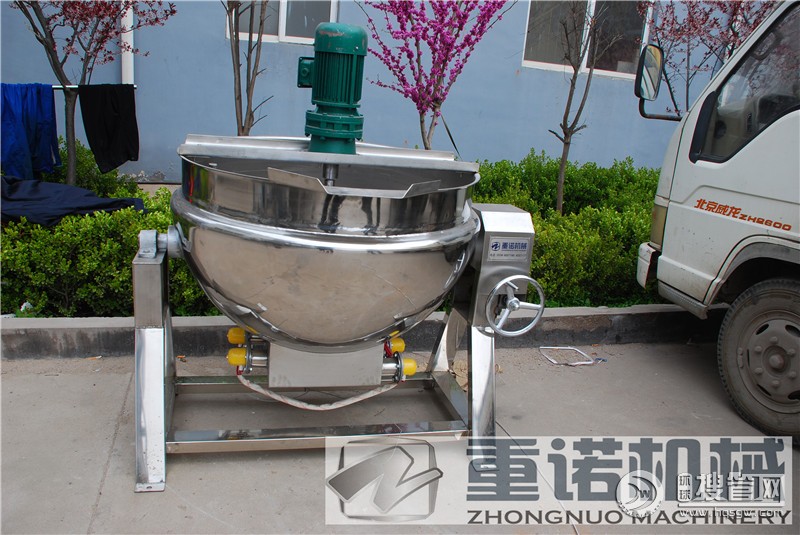也可用于炒菜,化糖,化膠,煮面,炒餡料(比如豆沙餡,蓮蓉餡,月餅餡,綠豆餡等),煮筍干,煮鹵制品(比如豆腐干,肉制品,毛豆等),鹵制品(比如雞爪,雞翅,鹵蛋,鴨爪,鴨脖,豬耳朵等)等固體物料,這些物料的客戶一般會選用此夾層鍋 并帶攪拌式的。