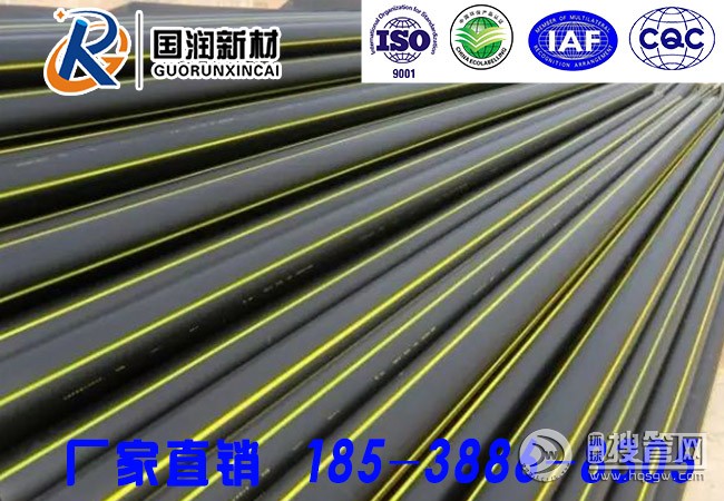 洛陽國潤新材的PE燃氣管均采用PE80級樹脂和E100級樹脂。PE100級樹脂的顏色為黃色或者黑色,生產的管材顏色為黃色或黑色管材加黃色標記,PE100級樹脂的顏色為橙色或黑色,生產的管材顏色為橙色或黑色管材加橙色標記。制造標記色條的混配料的基礎樹脂,必須與生產管材的混配料的基礎樹脂相同。