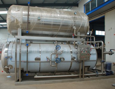 蒸汽殺菌鍋,鴨蛋殺菌鍋,殺菌鍋廠家本設備是在雙層水浴式殺菌鍋的基礎上延伸開發的新型產品,其優點比雙層殺菌鍋產量提高了1倍,節約了能源,用戶可大大降低設備的成本。高溫短時間滅菌采用雙罐熱水循環進行殺菌,事先將殺菌罐內的水加熱到滅菌所要求的溫度,從而縮短了滅菌時間,提高了工作效率。節約能源,提高產量在殺菌過程中使用的工作介質可循環使用,節省了能源、時間及人力、物力的消耗,降低了生產成本。殺菌時兩罐體作為滅菌罐交替使用,同時提高了產量。均一的水流交換方式,溫度均一,無死角
