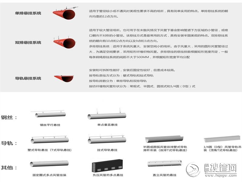 鋼絲懸掛系統是最為常用的布袋風管懸掛系統,對于其中的單排、雙排和多排懸掛系統,主要特點如下: