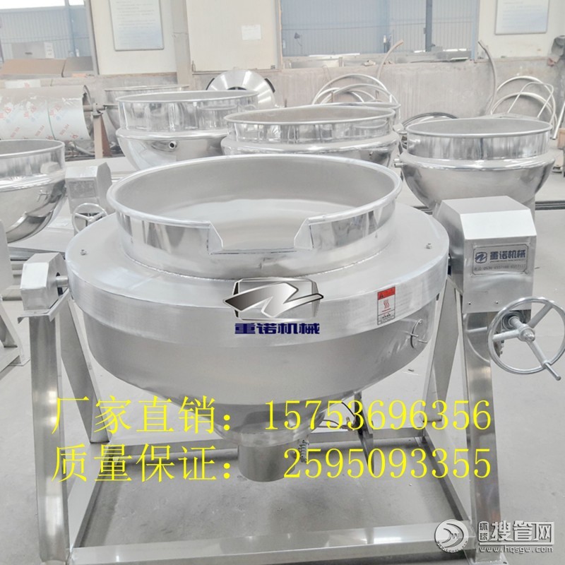 煮粥夾層鍋 餛飩夾層鍋 電加熱蒸煮鍋主要由鍋體、架體、攪拌系統、加熱系統、調速傳動裝置、攪拌軸、鍋體翻轉系統等組成,