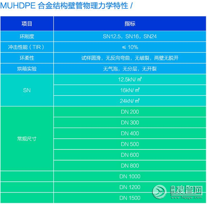 1、HDPE雙壁波紋有哪幾種規格?DN200mm,DN300mm,DN400mm,DN500mm,DN600mm,DN700mm DN800共六種;