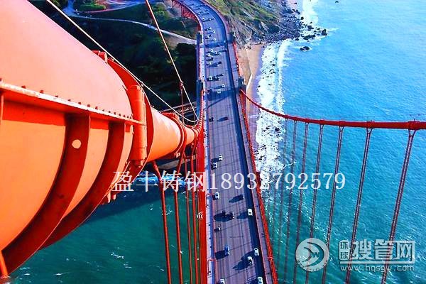 索鞍是支承主纜的重要構件,其作用是保證主纜索平順轉折;將主纜索中的拉力在索鞍處分解為垂直力和不平衡水平力,并均勻地傳至塔頂或錨碇的支架處。索鞍可分為塔頂索鞍和錨固索鞍。塔頂索鞍設置在橋塔頂部,將主纜索荷載傳至塔上;錨固索鞍(亦稱散索鞍),設置在錨碇的支架處,主要作用是改變主纜索的方向,把主纜索的鋼絲繩束在水平及豎直方向分散開來,并將其引入各自的錨固位置。為了減少塔頂索鞍處鋼絲的彎曲次應力,塔頂索鞍彎曲半徑一般為主纜索直徑的8—12倍;而散索鞍必須考慮鋼絲繩束的水平曲率半徑和豎直曲率半徑,以確定索鞍合理形狀。索鞍通常采用鑄焊組合件組成,大型組件采用分塊制作,安裝后通過螺栓或焊接連成整體。