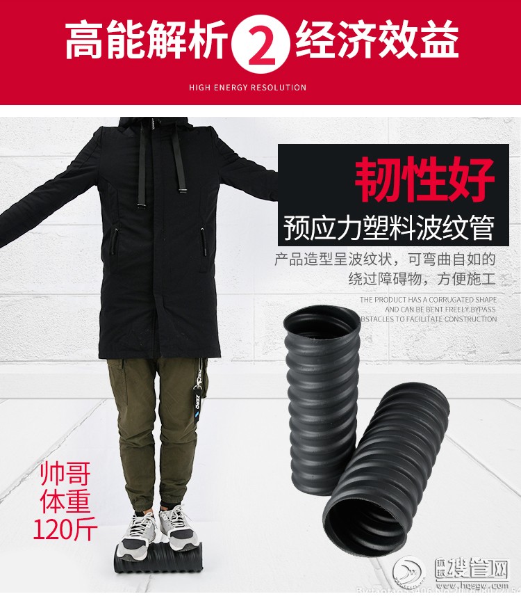 預應力塑料波紋管是以HDPE為生產原材料,主要應用于后張預應力水泥結構,拉桿的成孔,擁有密封性好、無滲水漏漿、環剛度高、摩擦參數小、耐老化、抗電侵蝕、柔彈力好、不易被搗棒鑿破和新式的聯接方式使施工聯接更方便的長處,主要應用于公路,鐵路,橋梁,斜坡,高層建筑等大跨度張拉工程建設中。