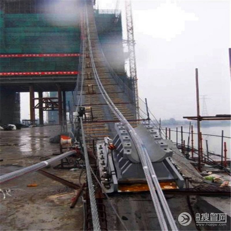 索鞍是指供懸索或斜拉索通過塔頂的支承結構。它的上座由肋板式的弧形鑄鋼塊件制成,上設有索槽,安放懸索或斜拉索