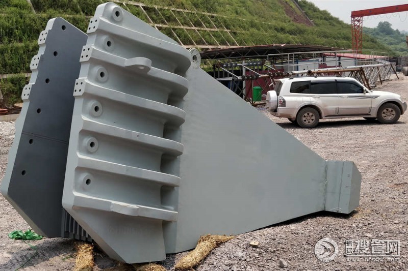 (5)吊裝鞍體,將分塊連接面油脂污物擦凈,使結合面密貼,以保證索股槽路弧線正確。依次將分件體吊至座板上,吊裝時注意輕放,避免棱角刻傷座板面。