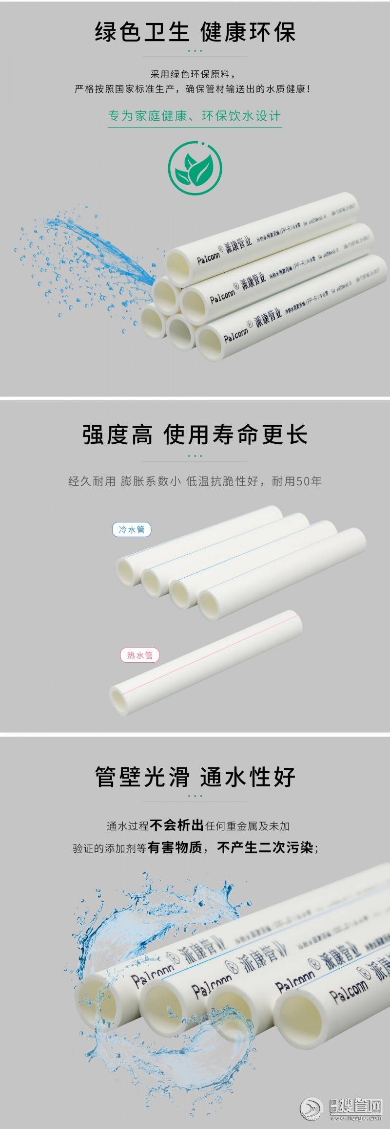 派康PP-R供水管道系列產(chǎn)品均采用韓國曉星、北歐化工等原裝進口PP-R原料加工而成,產(chǎn)品使用100%純原料,不摻雜任何其他原料及填充物。派康PP-R供水管道均符合生活飲用水供水用品衛(wèi)生標準,不含任何有毒成分,真正保證您的飲用水不受管道的二次污染。
