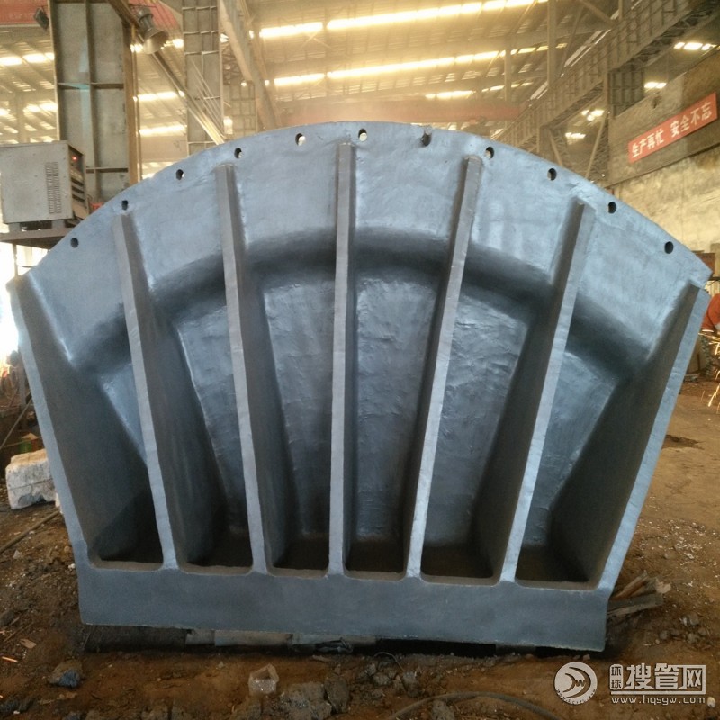 由于鞍體承受主纜的張力,要求曲面圓弧半徑為主纜直徑的8~10倍,為此鞍座體大質(zhì)重。為便于鑄造和吊裝,將鞍體分為幾段澆鑄,先加工結(jié)合面,再合口鉆孔安裝連接螺栓,最后冉進(jìn)行整體加工,安裝定位銷和打上對位刻度線。以便解體運輸和保證安裝對接精度。