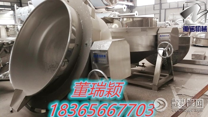 豆制品鹵制鍋,姜汁糖夾層鍋,杏仁夾層鍋主要由鍋體、架體、攪拌系統、加熱系統、調速傳動裝置、攪拌軸、鍋體翻轉系統等組成,