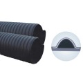 鋼帶增強(qiáng)PE螺旋波紋管是借鑒國(guó)外先進(jìn)的金屬塑料管材復(fù)合技術(shù)而開(kāi)發(fā)的一種 PE與鋼帶熔融復(fù)合的纏繞成型結(jié)構(gòu)壁管材。產(chǎn)品執(zhí)行CJ/T225-2006 標(biāo)準(zhǔn),管壁結(jié)構(gòu)由三個(gè)層次構(gòu)成,以螺旋纏繞成型的高強(qiáng)度鋼帶為增強(qiáng)體,以高密度聚乙烯為基體,采用獨(dú)特的制造工藝,將鋼帶與高密度聚乙烯融合成一體,使其既具有塑料管的柔韌性又具備了金屬管的剛性,適合大埋深的市政工程應(yīng)用。